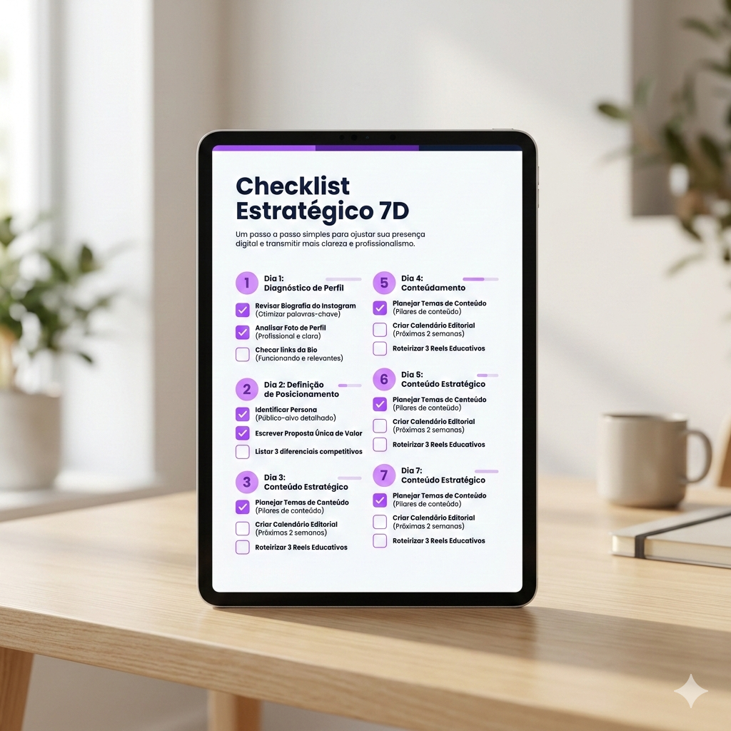 Defina seu posicionamento usando o Mini Guia + Checklist Estratégico.